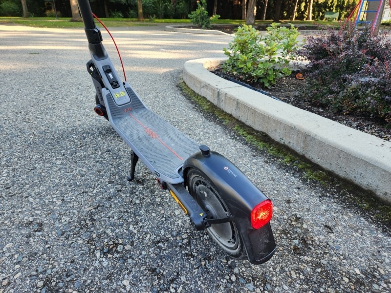 My only real gripe with the scooter is the folding mechanism lock (or lack thereof) and the fact it can’t do 40 km/h but that’s just wishful thinking at this pricepoint. The max 32km/h (20mph) in Sport Mode is a nice bonus for this model and is even higher than many jurisdictions in Canada and the USA allow. That said, I had no problem passing some light green colored rental e-scooters and definitely beat others off the start so the E3 Pro is no slouch.